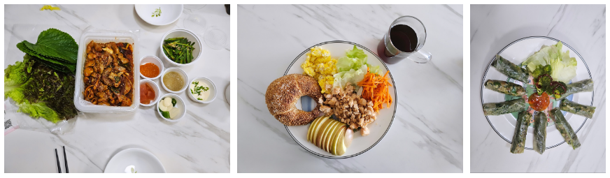 매일 먹은 식단을 촬영하였고, 원플레이트가 아닌 경우에는 2인이 같이 먹었습니다. 아래 사진들 보시겠지만 먹기 편한 시리얼과 요거트, 우유, 계란, 닭가슴살 위주의 식단도 있지만 추천하는 건강식으로는 호밀식빵샌드위치(with 당근/양배추 라페), 연어요리 입니다. 아롱사태 수육도 몸보신겸 해서 먹으면 진짜 맛있고 건강한 식단이 될 수 있습니다. 손이 많이 가거나 힘든 음식들은 만들지 않았으니 아래 다이어트 식단 확인해보시고 다 같이 다이어트 식단 성공하시길 바랍니다.