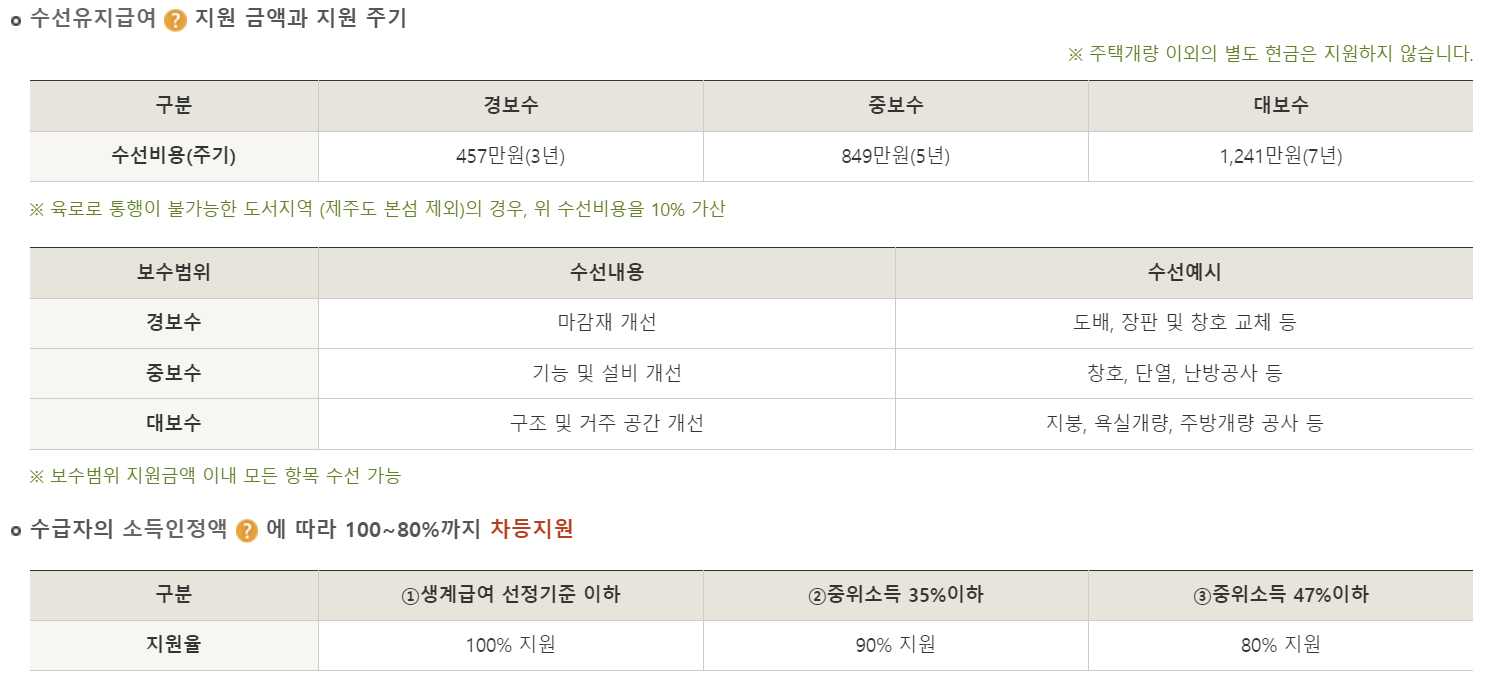 수선유지급여 지원 금액과 지원 주기는 다음과 같습니다.