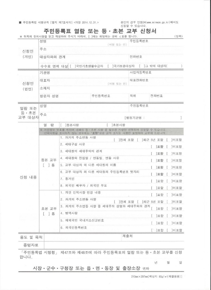 주민등록등본 제3자제출