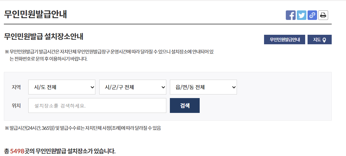 주민등록등본을 서면으로 제출해야 하는데 집에 프린터는 없고 주민센터 업무시간에 방문이 어려우신 분들은 무인발급기를 통해서도 주민등록등본 발급이 가능합니다. 무인발급기에서 주민등록등본 발급 시 수수료는 200원으로 주민센터에 방문할 때 보다 50%가 저렴한 금액입니다. 대부분의 무인발급기는 유동인구가 많은 지하철역이나 대형마트 또는 주민센터 앞에 위치하고 있습니다. 아래 정부민원사이트에서 우리 동네의 무인발급기 위치와 운영시간, 정기휴무 여부를 확인할 수 있습니다.