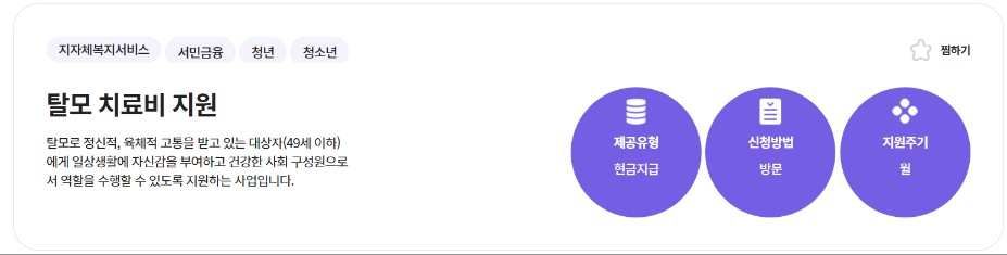 보령시에 1년 이상 거주 중인 만 49세 이하 시민을 대상으로 병원, 한의원과 같은 의료기관에서 탈모 치료를 받은 지원금에 대해 신청년도 2년 이내 진료비