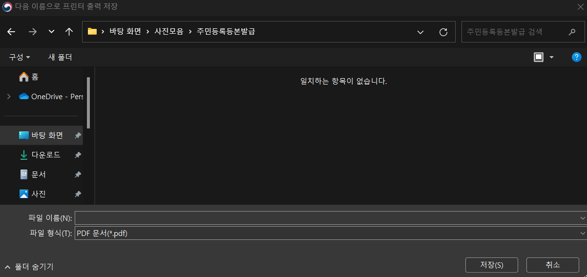 주민등록등본을 온라인으로 발급신청은 가능하지만 프린트가 없어서 곤란하신 적 없으신가요? 주민등록등본은 인터넷으로 발급받은 후 출력하지 않고 PDF로도 저장이 가능합니다. 인쇄 버튼을 누른 후 프린터를 "PDF로 저장" 또는 "Microsoft Print to PDF" 또는 "Adobe PDF" 중 한 가지를 선택하고 인쇄를 누르면 저장을 누르면 다른 이름으로 프린터 출력 저장이 가능합니다.